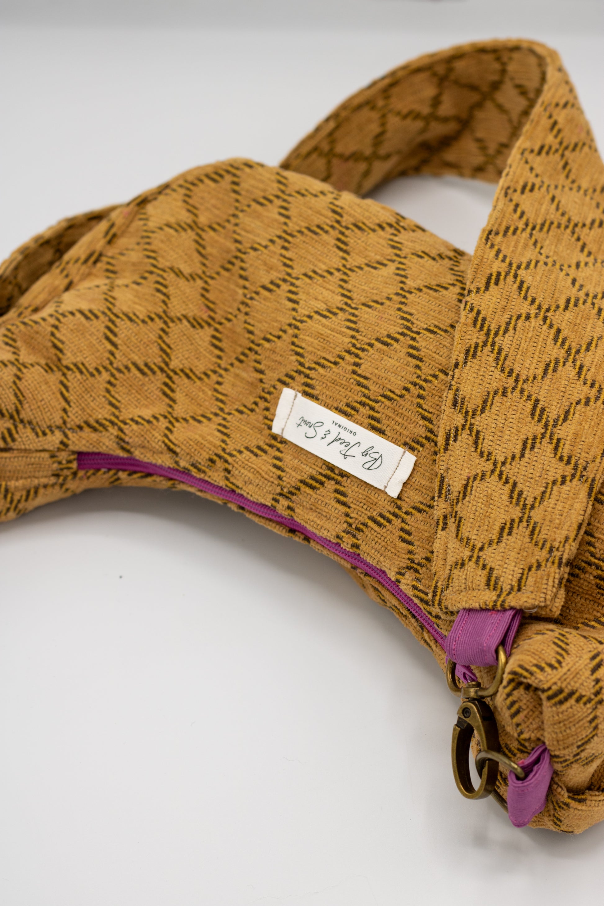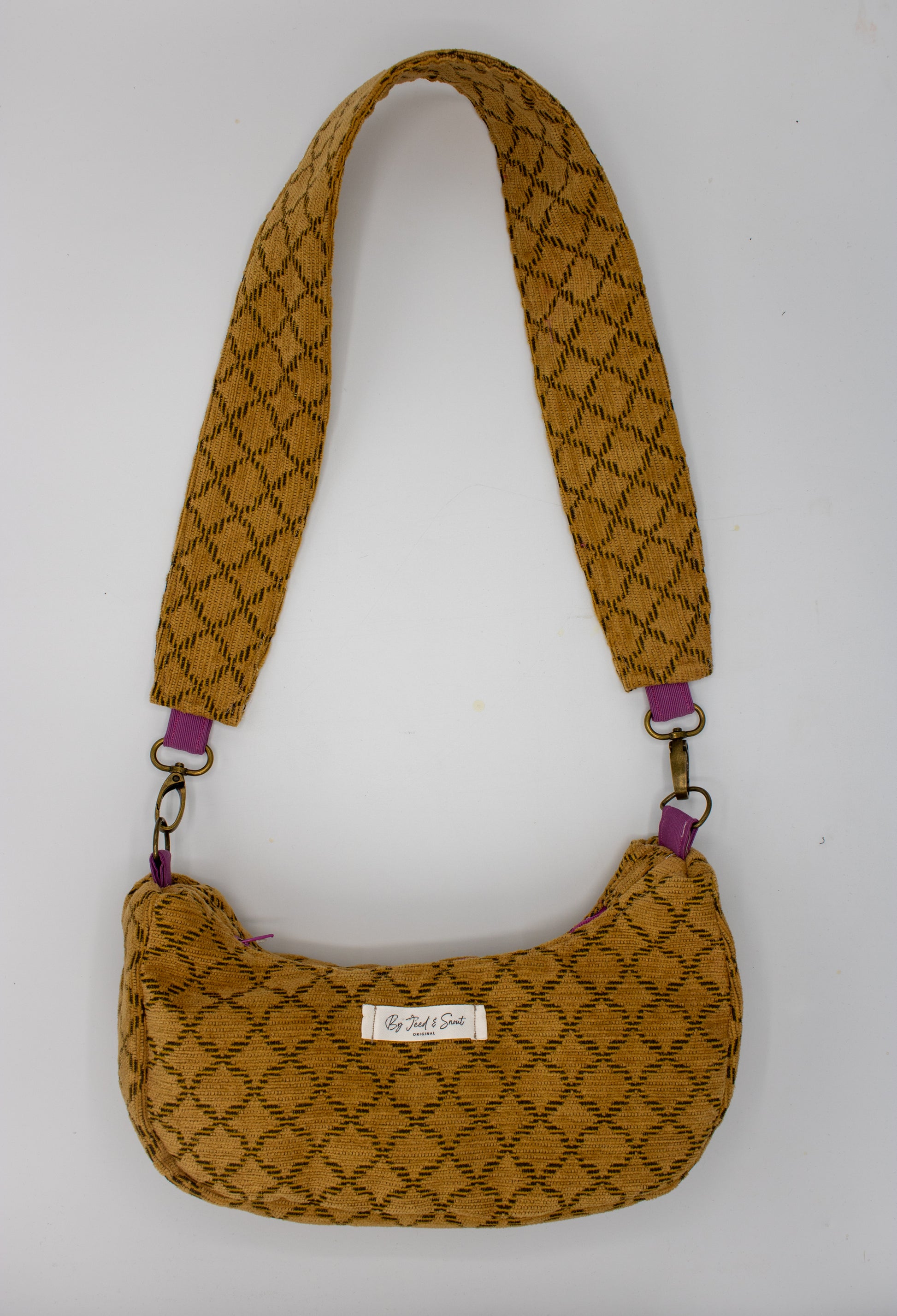 Verwelkom de zon met 70s Shine – een tas die de gouden tijden van de jaren ’70 doet herleven met haar mosterdgele tint en funky retro patroon. Perfect voor die vintage vibes en klaar om elke outfit te laten stralen. Handgemaakt met liefde en helemaal uniek!